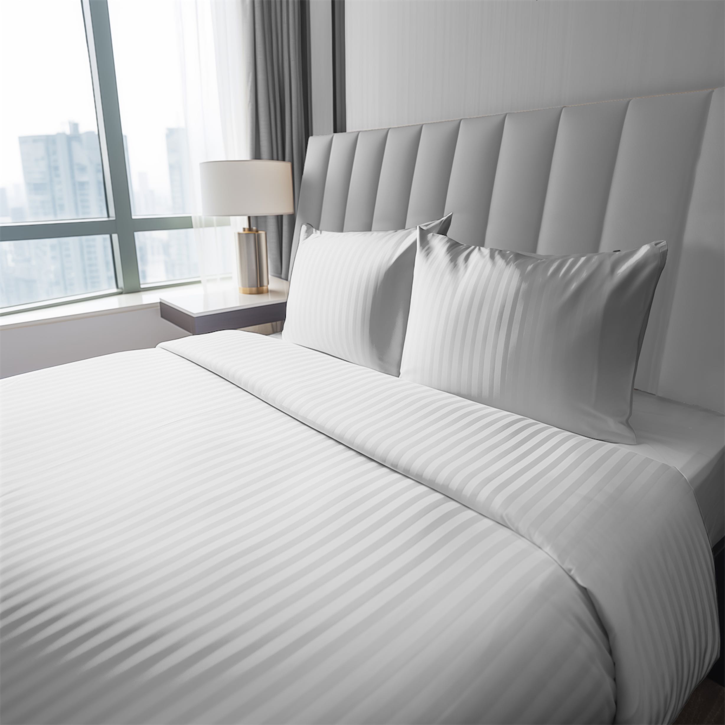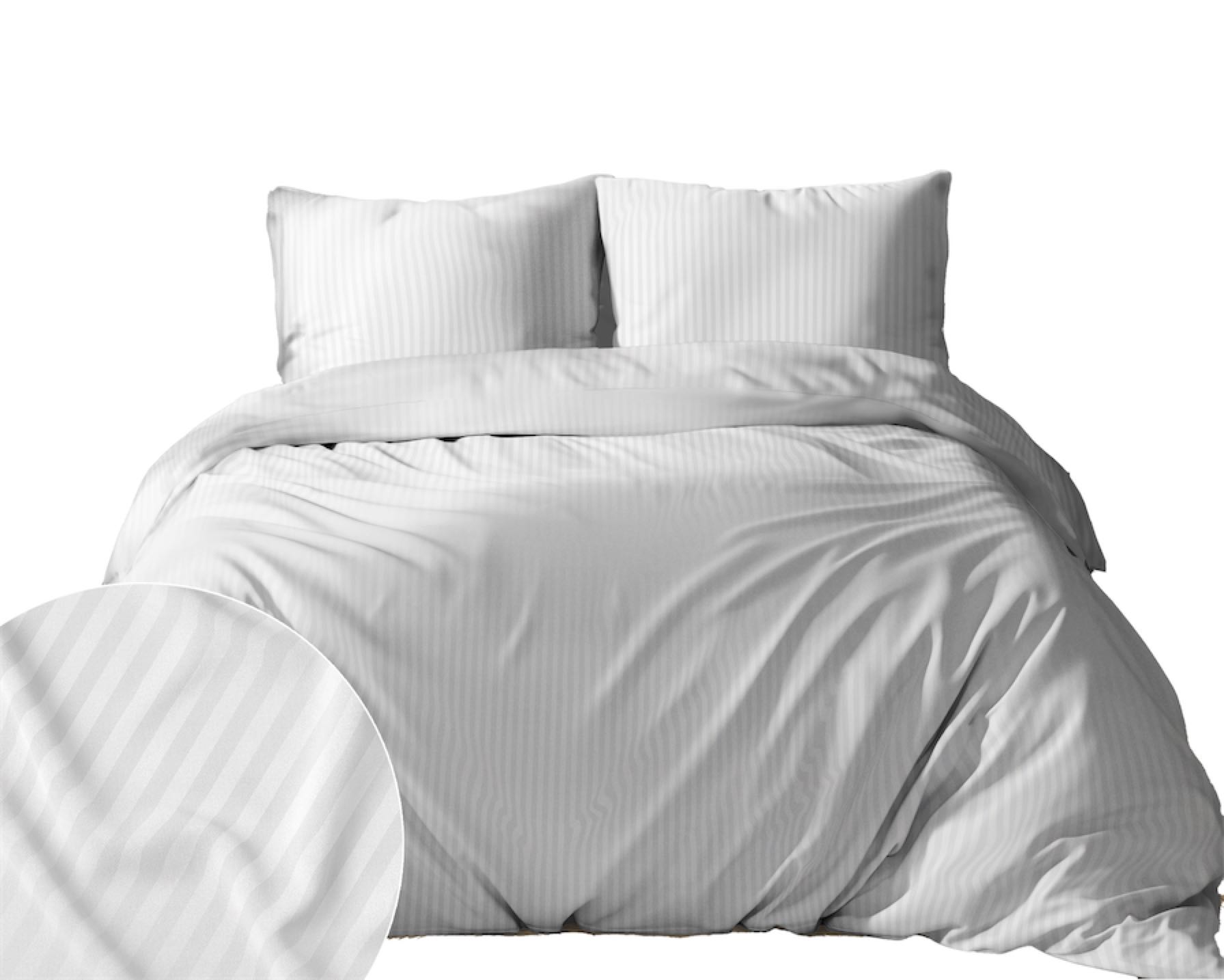 Pościel adamaszek 160x200 jednobarwna w paski PURE biała