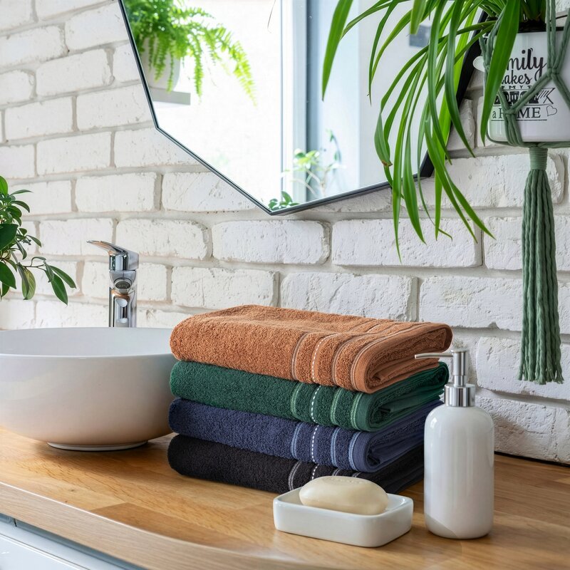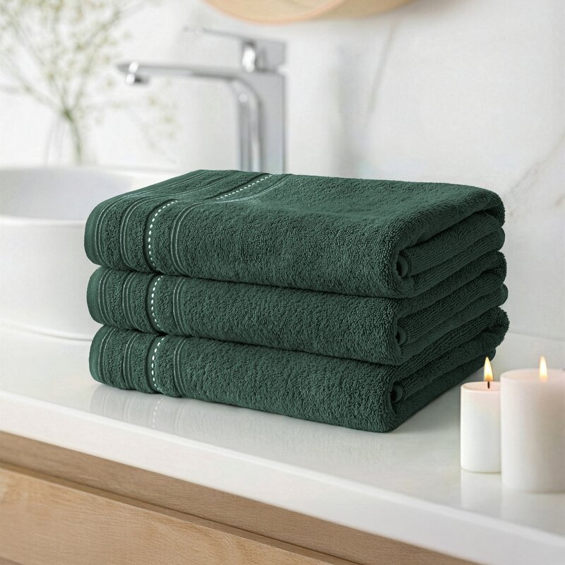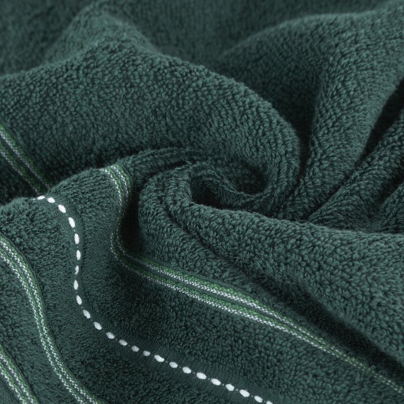 Głęboki ciemnozielony kolor nadaje ręcznikowi elegancki i nowoczesny charakter. Doskonale komponuje się z naturalnymi aranżacjami łazienek, wnętrzami w stylu spa, a także z modnymi dodatkami w odcieniach beżu, złota czy czerni.